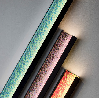 FIELDS by Garcia Cumini: Based on essential geometry that creates a distinctive visual and graphic effect, the new version of Fields features more elegant proportions and a slimmer structure. Fields transmits diffused and reflected warm LED light, can be installed both horizontally or vertically.